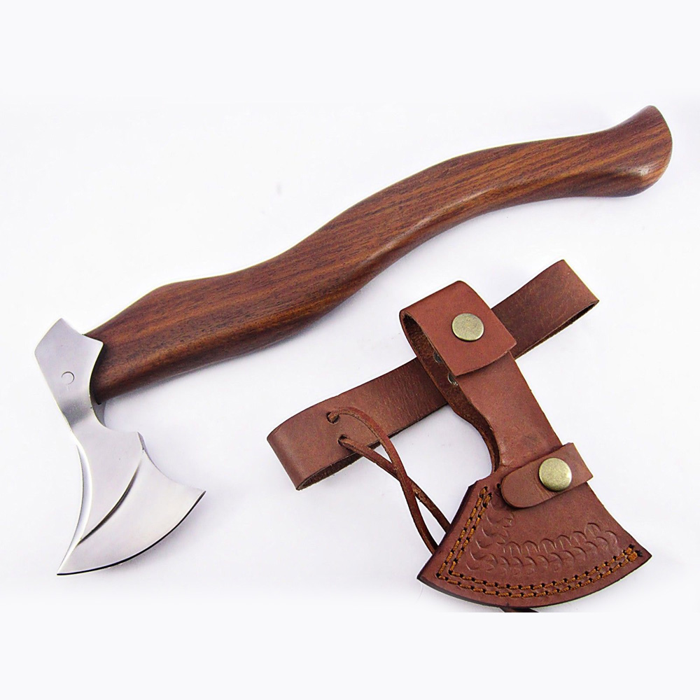 Hand-Forged Handle Material: Walnut Type: Complete Axe Tang: Full Purpose: Tactical Blade Material: Carbon Steel Overall Length: 16.00' Inches Axe Blade Length: 05.00' Inches Handle Length: 16.00' Inches Blade Cutting surface: 04.00' Inches Handle Material: Walnut wood handle Blate Material: 5160 High Carbon Hardness: 58 - 60 Sheath Material: Yes Mosaic Pin: Yes